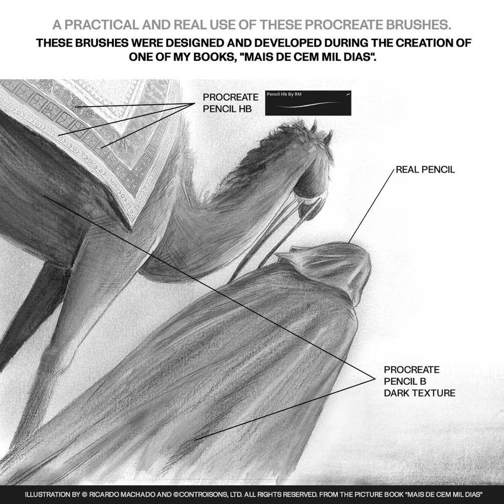 Experience the details of our Procreate Pencil Party Set, meticulously crafted and employed in the creation of 'Mais de Cem Mil Dias,' one of my published books. These brushes, born from real-world experience, are now available for you. Ideal for lifelike pencil illustrations, seamlessly blend with real pencil work.